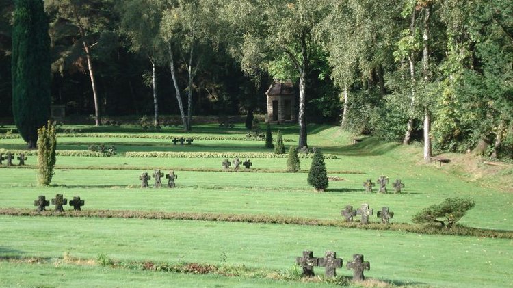 Für die Anlegung einer bleibenden Kriegsgräberstätte stellte die Familie von Loë ein 2 ha großes Gelände, das im Volksmund “Sandberg” genannt wurde, unentgeltlich zur Verfügung. Der “Sandberg” war im Krieg schwer umkämpft und wechselte mehrfach den Besitzer.